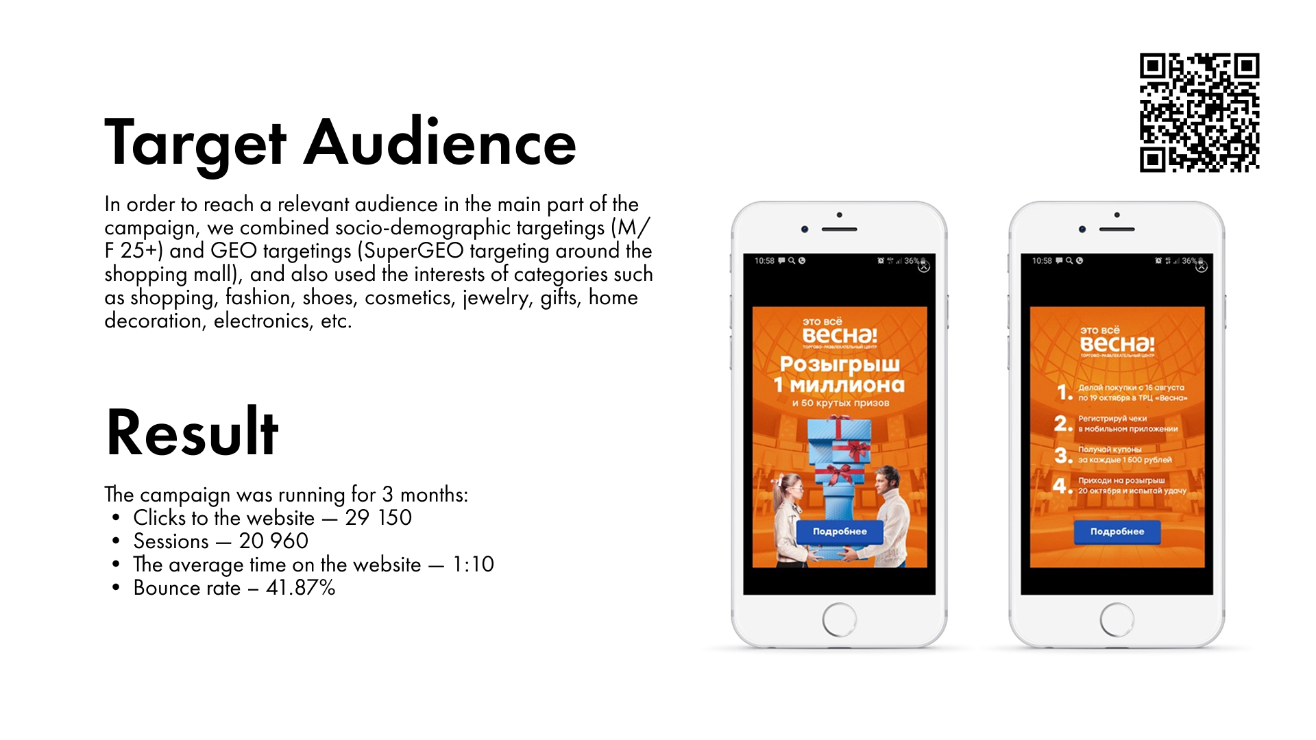 For example, to promote a spring giveaway in a shopping mall, the BYYD team used geo-targeting. Ads were shown to those near the mall who were also interested in fashion, shopping, electronics, etc.
