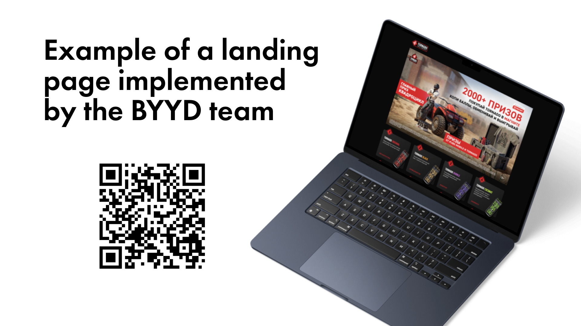 In addition to promotion, the BYYD team can create a unique landing page for the advertising campaign. Landing pages increase conversion due to individual adaptation and a clear presentation of the product or service’s benefits.