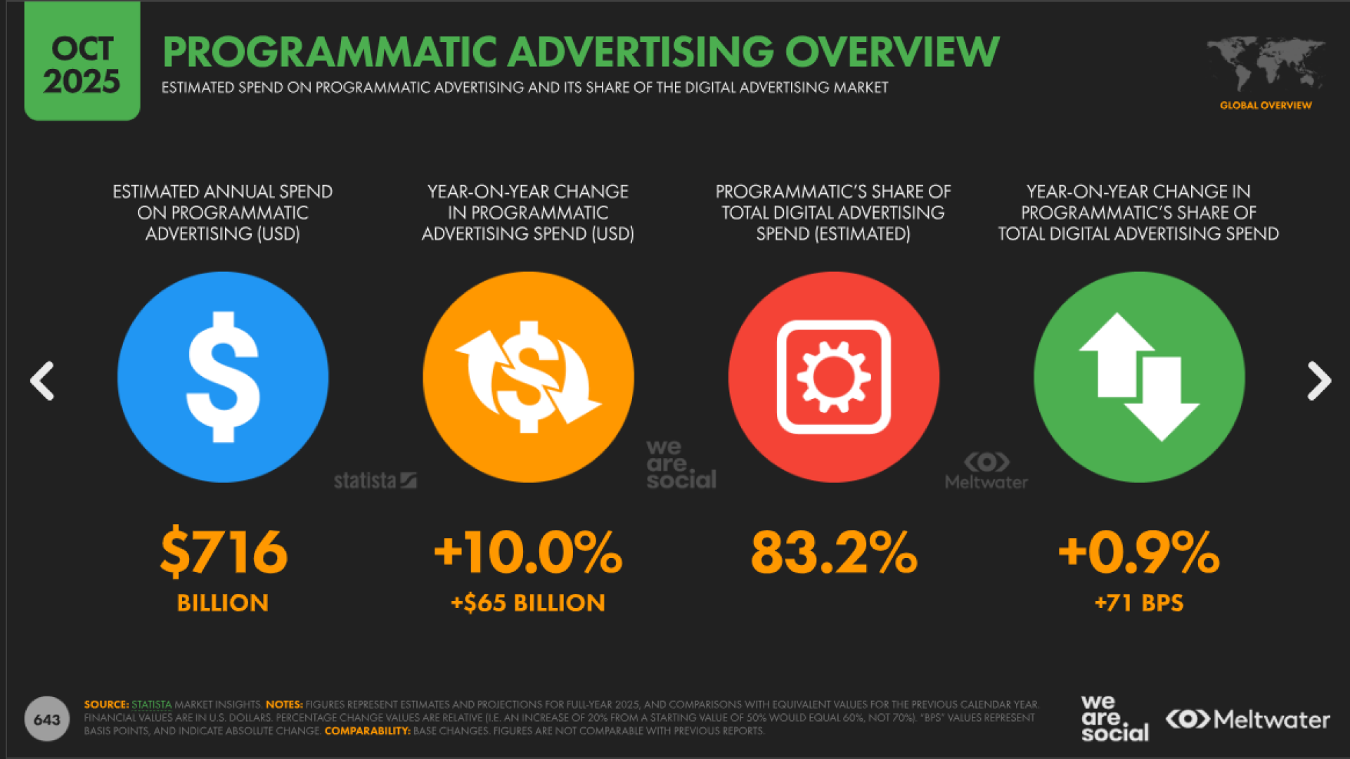 Programmatic ad spend reached $716 billion in 2025, growing by 10% (+$65 billion YoY).