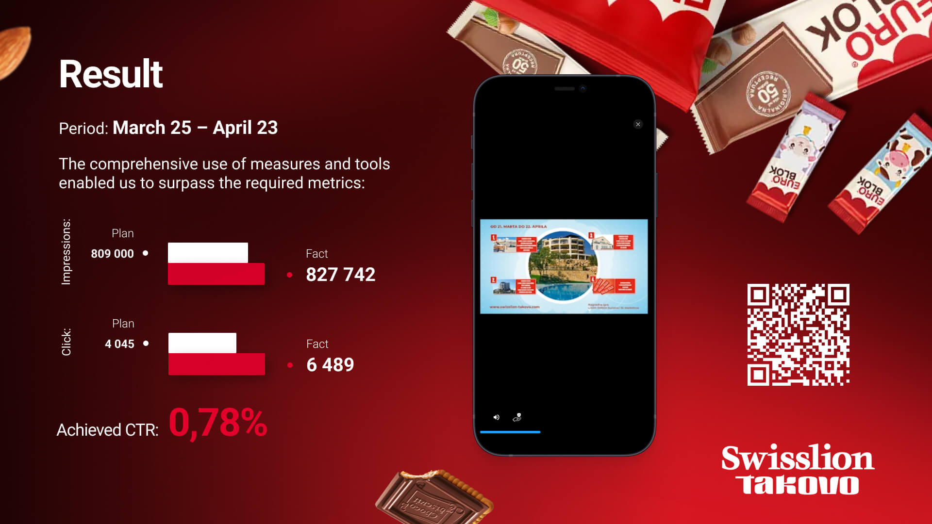 BYYD offers various advertising formats. For example, a video banner and interest-based targeting were used for the promotion of Swisslion sweets. As a result, the campaign achieved over 800,000 impressions and more than 6,000 clicks.