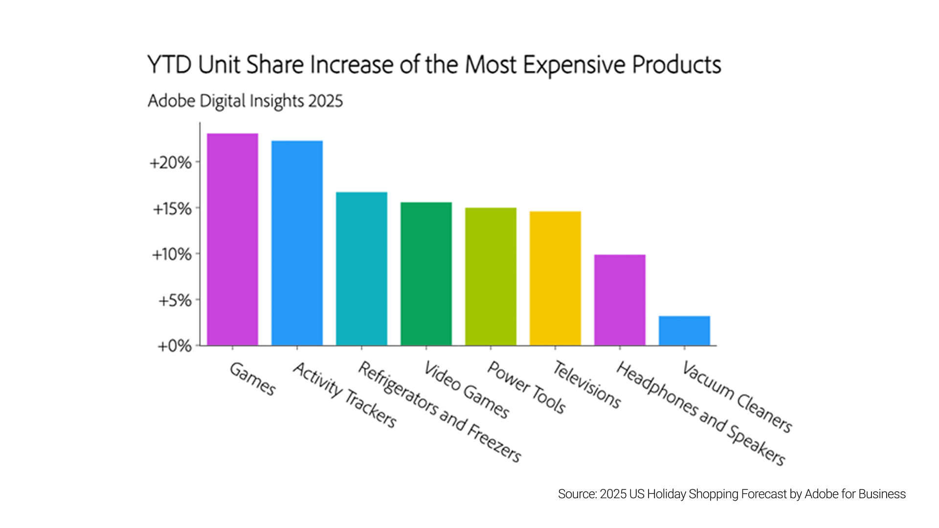 Holiday sales growth is expected across categories such as games, video games, large home appliances, televisions, and vacuum cleaners — segments that show a clear preference for premium products.