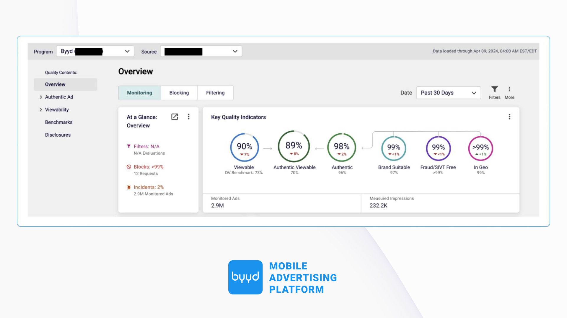 At BYYD, trackers are used as a brand-protection instrument — ensuring that mobile campaigns deliver maximum value and that every impression meets quality standards.