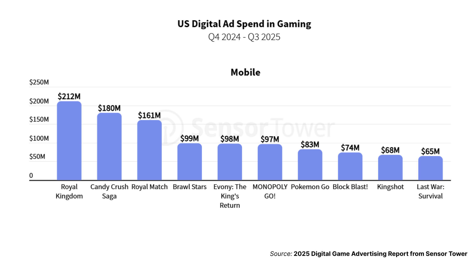 Royal Kingdom leads the ranking of mobile games by advertising spend in the U.S. gaming industry. In less than a year, it became the 18th largest game in the world by in-app purchase revenue.