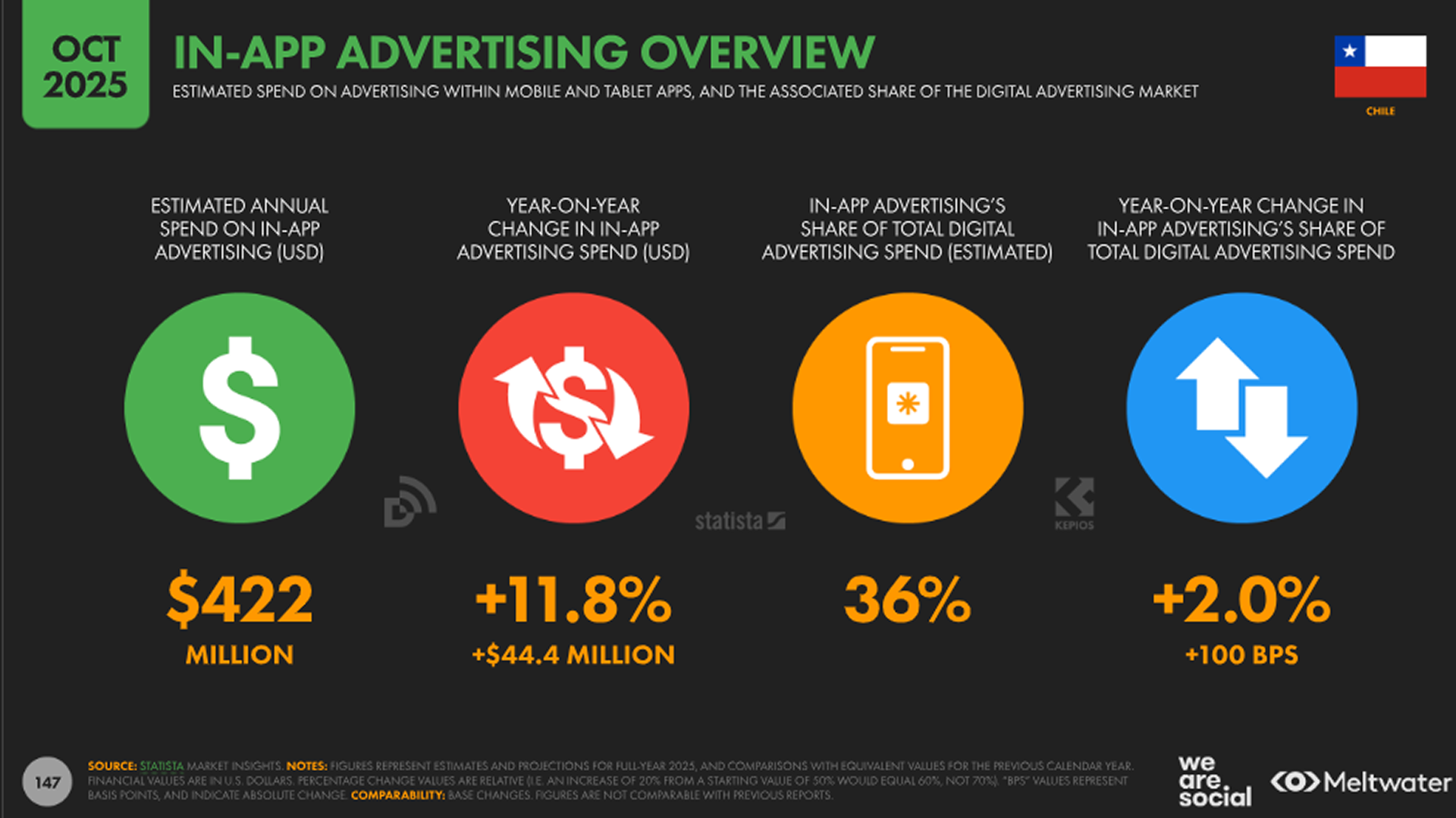 In-app advertising accounted for 36% of Chile’s ad market in 2025. This reflects the global shift toward mobile-first user engagement.
