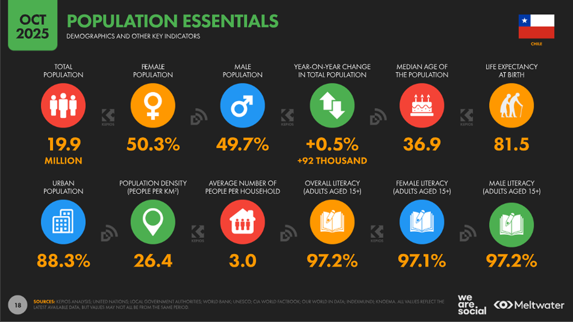 By the end of 2025, Chile’s population reached 19.9 million. At the same time, 18.8 million residents are internet users, which represents an impressive 94.5% penetration rate.