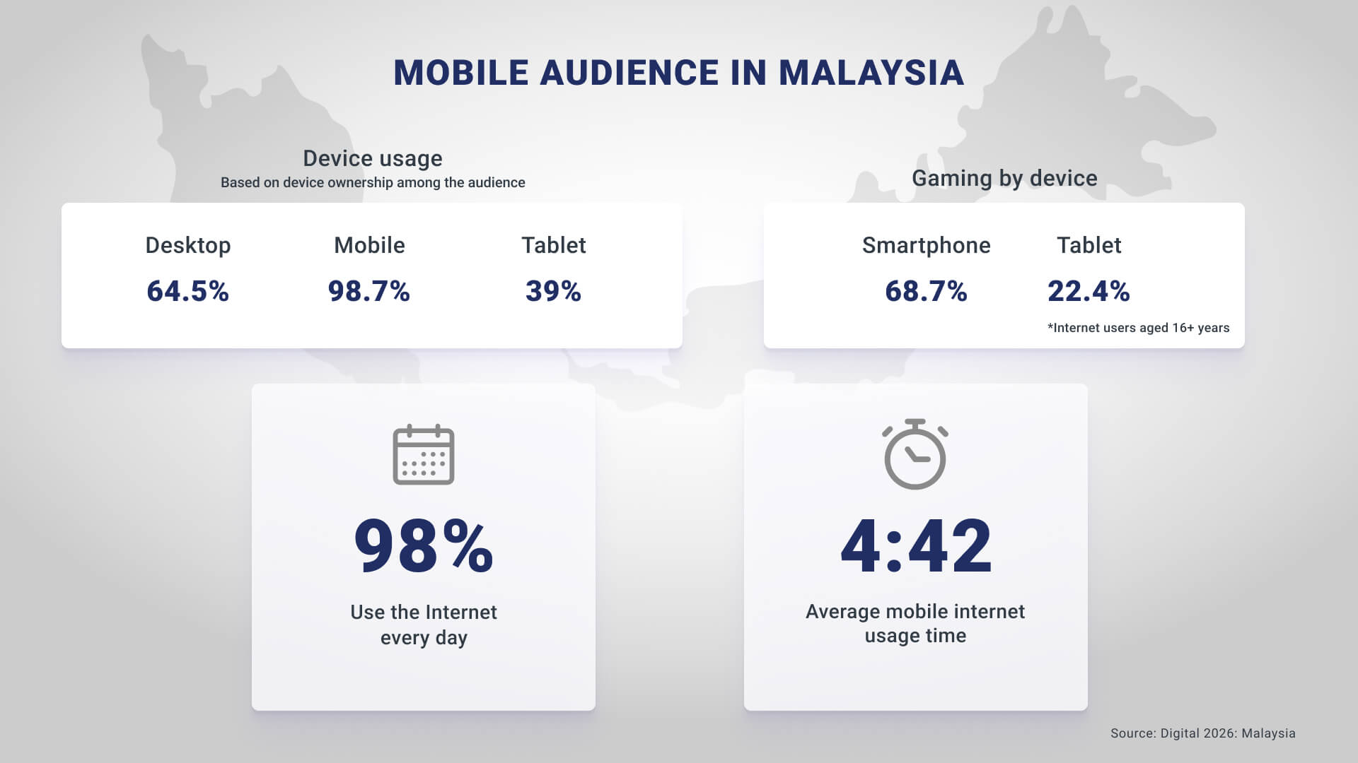 According to DataReportal, there were 35.4 million internet users in Malaysia at the end of 2025. Of these, 97.9% access the internet via mobile phones. It clearly demonstrates the dominant role of mobile devices in users’ daily digital behavior.