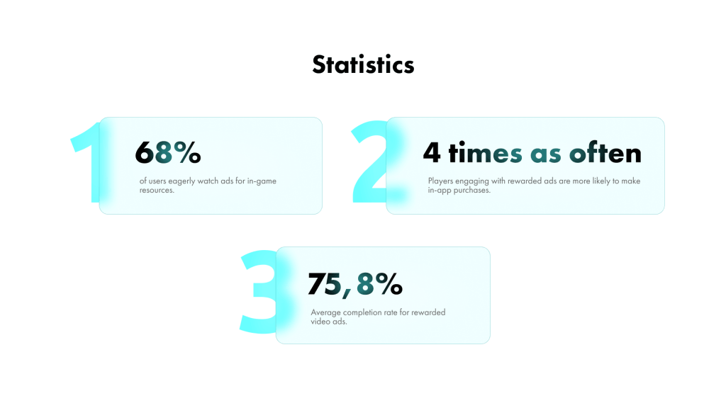 According to TechCrunch, 68% of gamers say they like rewarded advertising, and users who watch rewarded ads are six times more likely to make in-app purchases.