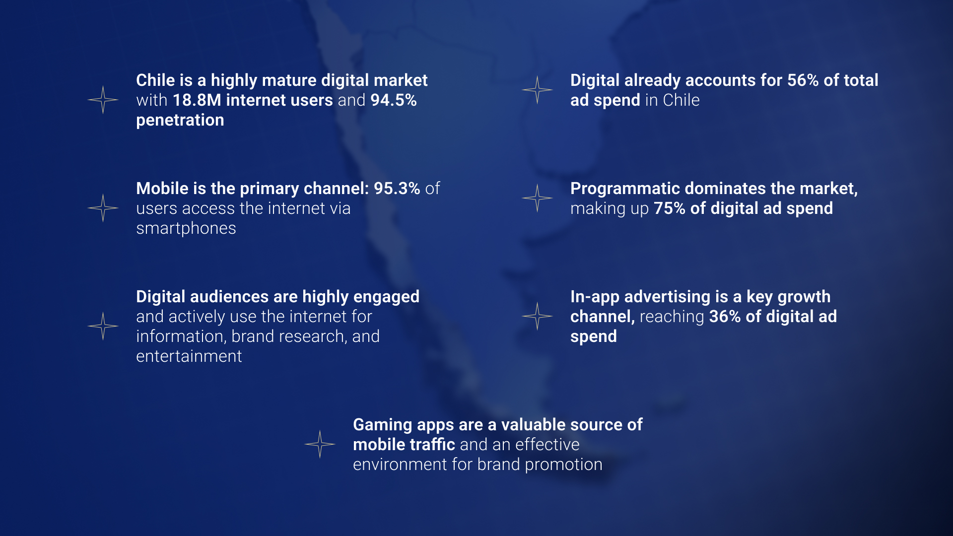 Against this backdrop, the key challenge for brands is no longer simply reaching audiences online, but competing effectively for their attention in an already well-developed digital environment. High connectivity, strong smartphone usage, and active digital media consumption make Chile an important market for advertisers looking to combine reach with precise audience targeting.