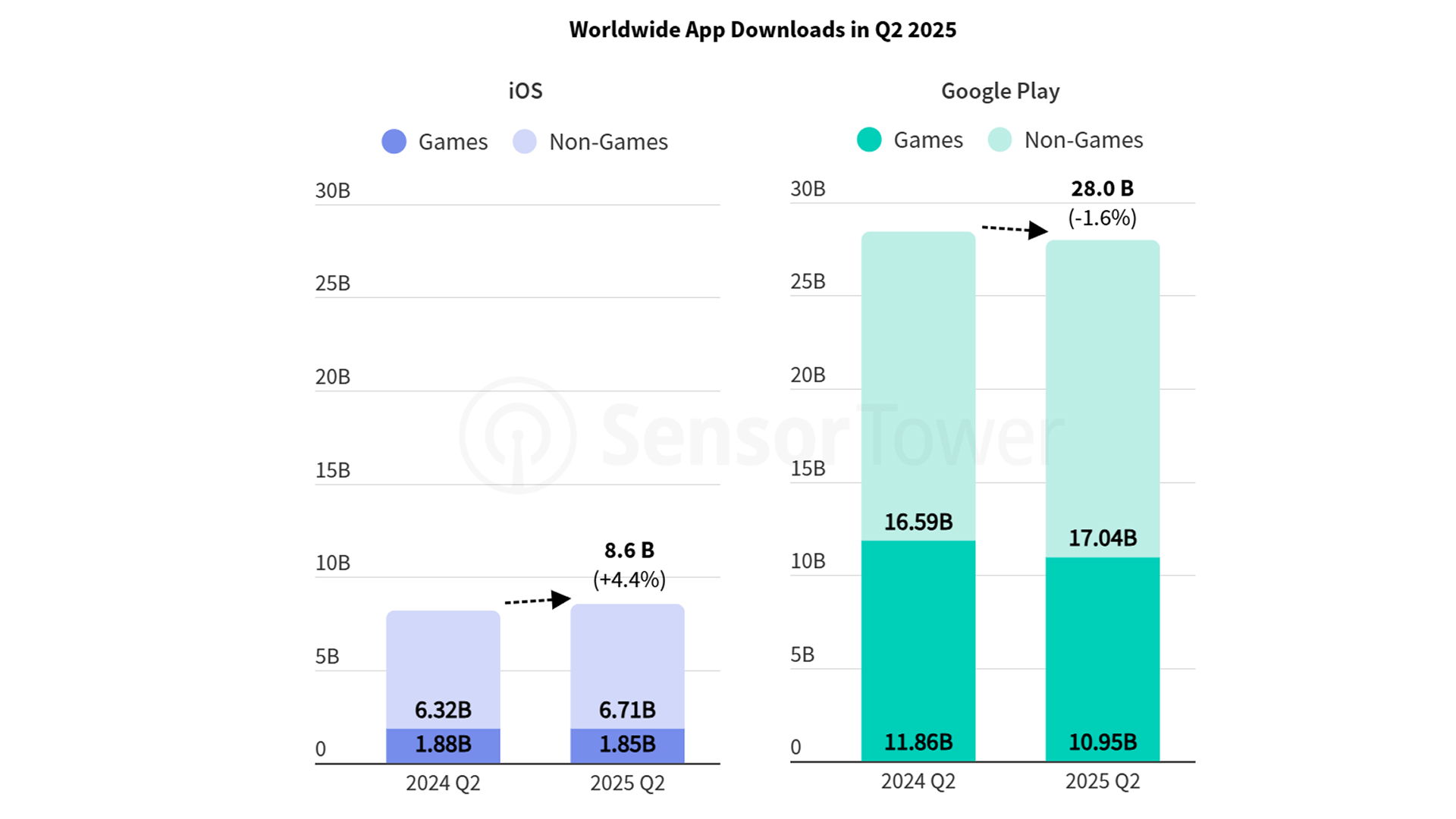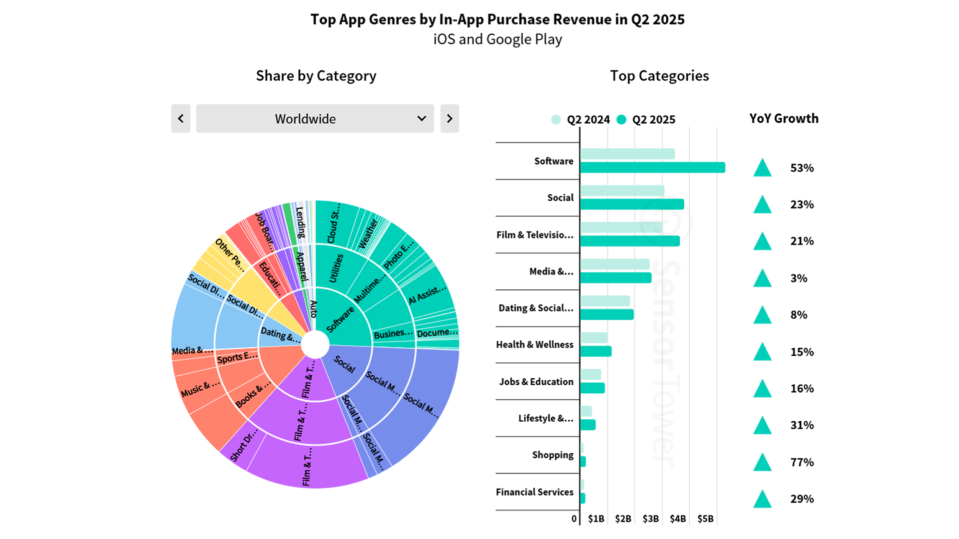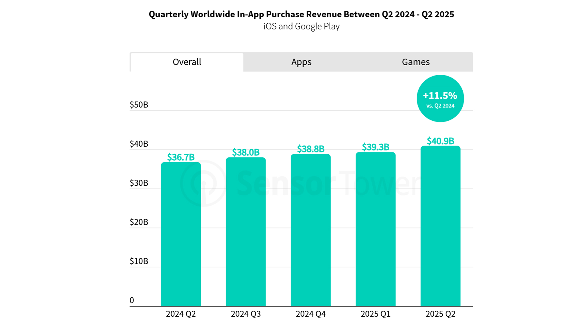 Según estadísticas, los ingresos de las aplicaciones no lúdicas aumentaron del 26 % del ingreso total de IAP en el segundo trimestre de 2019 al 52 % en el segundo trimestre de 2025.