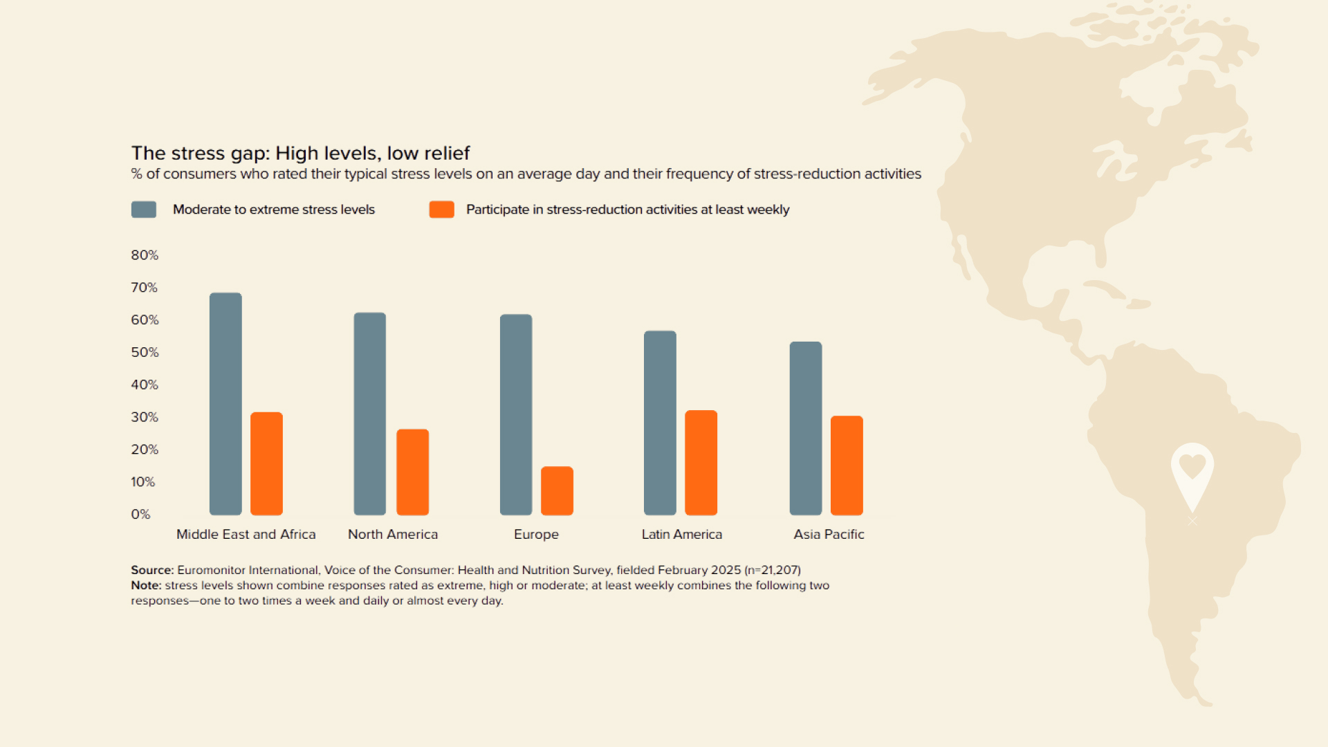 Según Euromonitor International, los consumidores buscan comodidad, tranquilidad y protección mental en un mundo conflictivo e inestable. La presión social por “optimizarlo todo” crea expectativas poco realistas. Los rápidos cambios tecnológicos aumentan la sensación de saturación.
