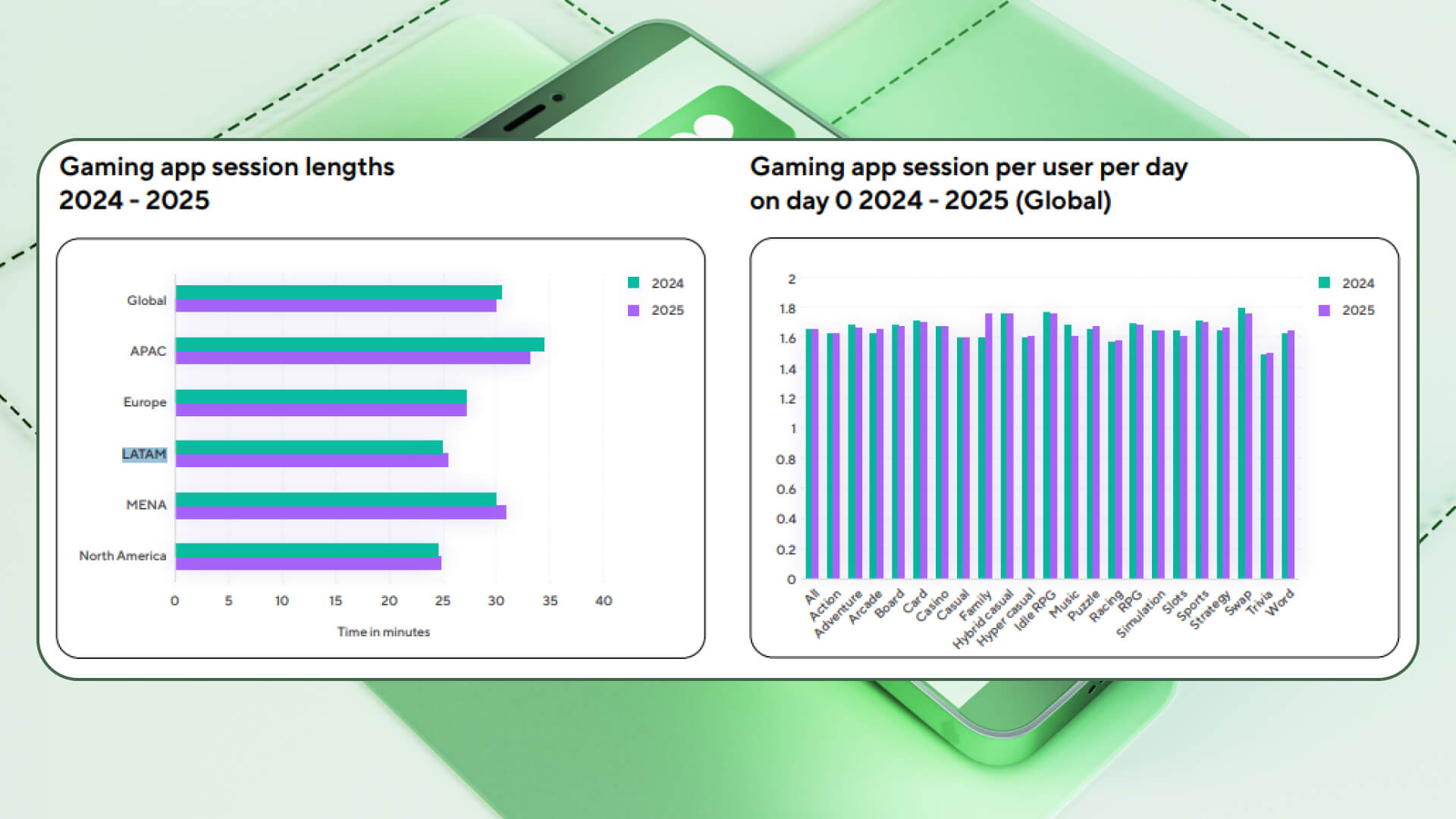 En segundo lugar, la duración media de las sesiones en aplicaciones de gaming aumentó hasta 25,44 minutos. Esto demuestra que la audiencia de jugadores en LATAM es estable y con alto nivel de retención, lo que convierte a este entorno en un canal predecible para la publicidad.