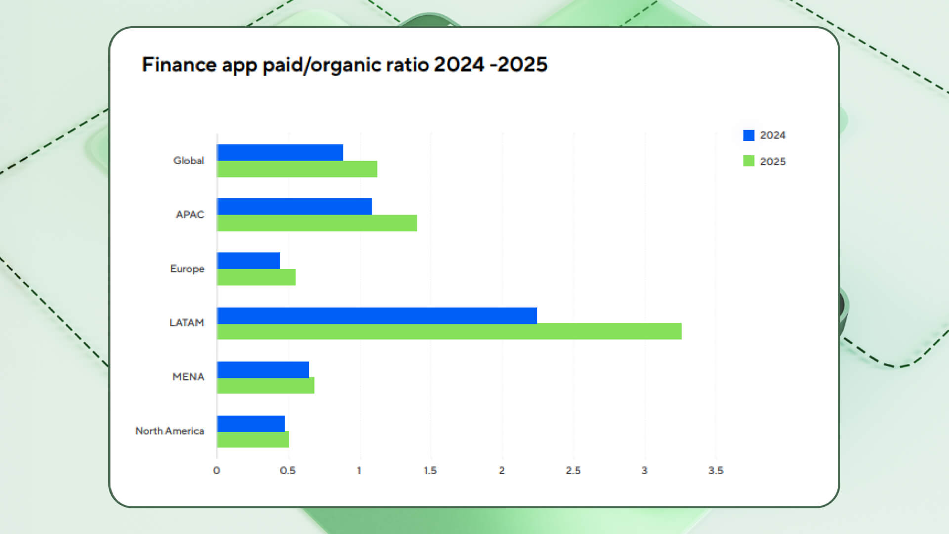 Además, LATAM lideró entre las regiones en el aumento de la cuota de adquisición pagada para aplicaciones financieras en 2025.