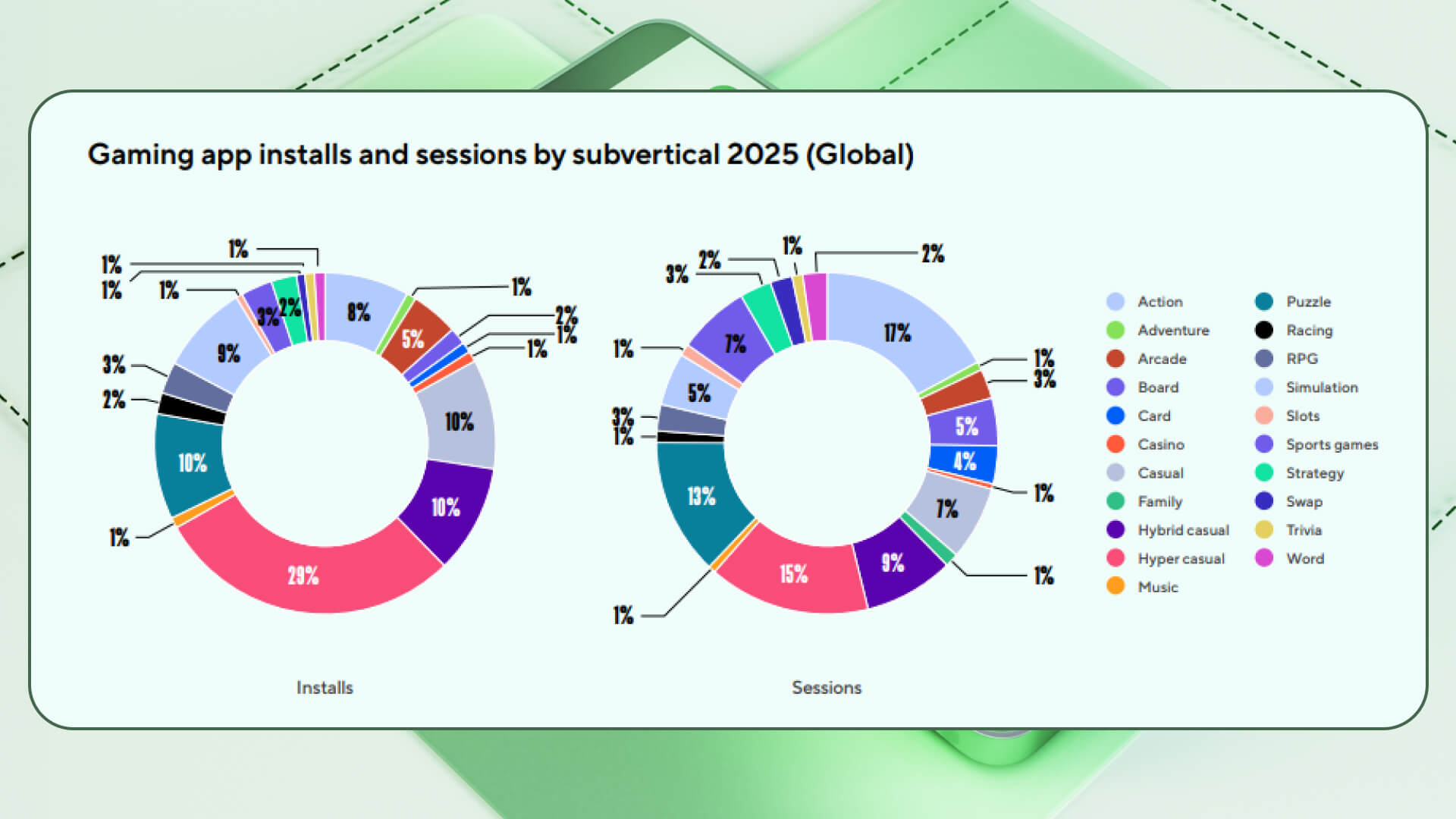 En 2025, los juegos hipercasuales ocuparon la mayor proporción de instalaciones en el mundo, con un 29,1 %. Estos son juegos con la jugabilidad y el diseño más simples posibles. No requieren entrenamiento y se inician instantáneamente.