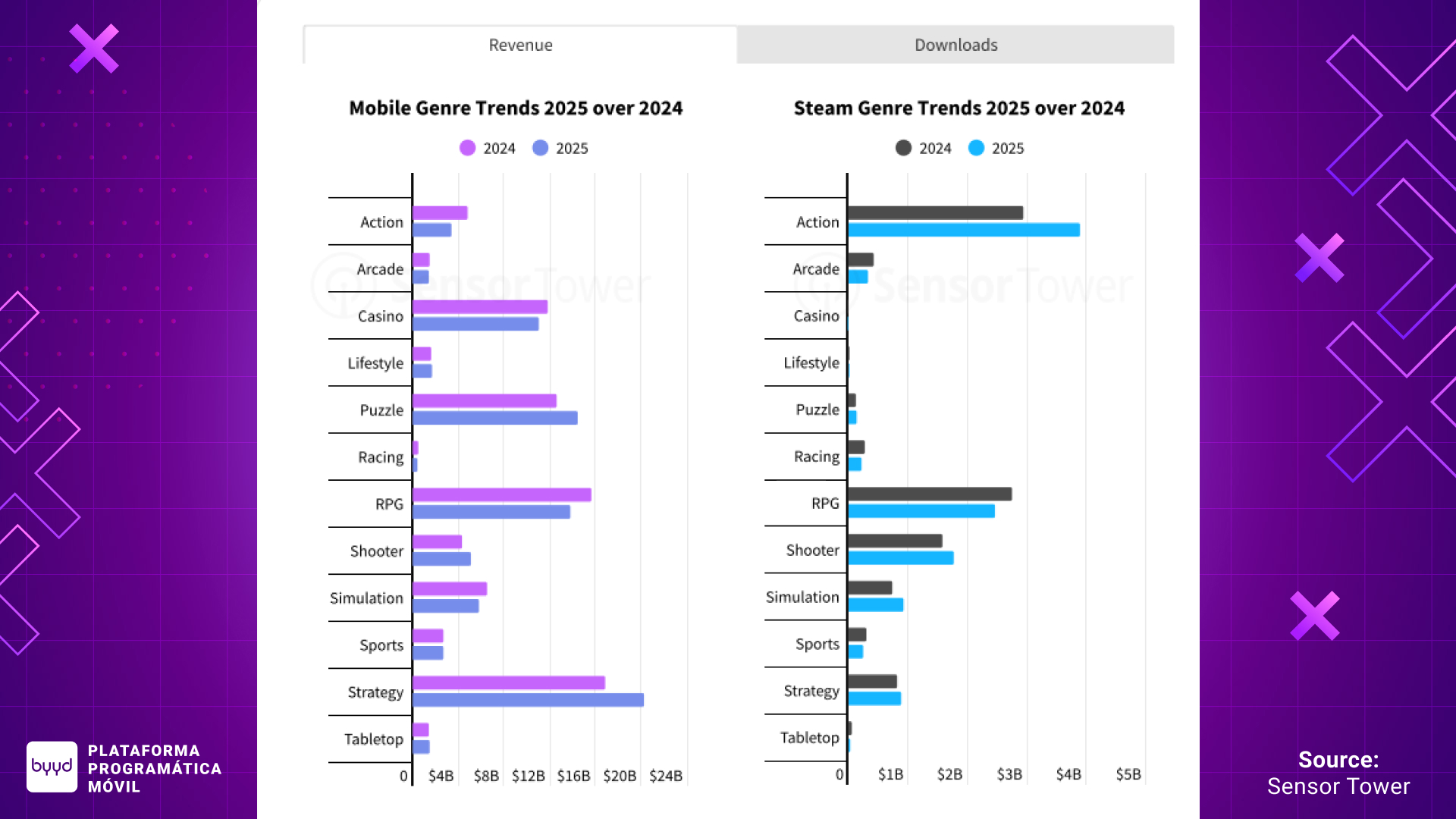 En mobile, el crecimiento de las estrategias estuvo impulsado por una ola de juegos 4X desarrollados en Europa del Este y Asia. Entre ellos destacan Last War: Survival y Whiteout Survival. El juego con mayor crecimiento en ingresos fue Kingshot, seguido de Delta Force.