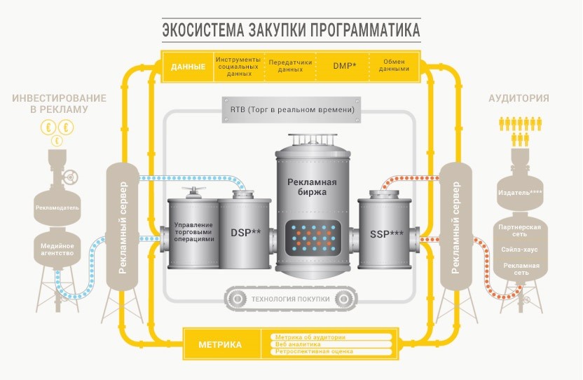 DSP** — платформа спроса, это компания, которая закупает пространство для интернет-рекламы в реальном времени.