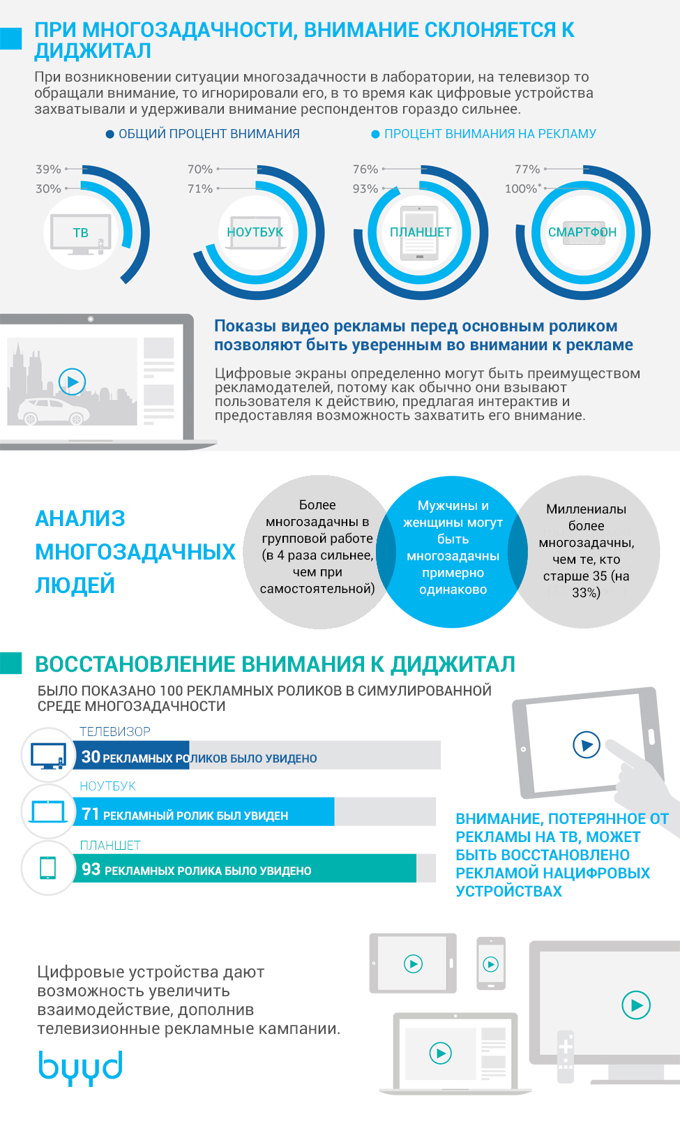 Сегодня мы продолжаем изучать поведение потребителей по отношению к различным типам устройств. Как многозадачность влияет на внимание пользователей к рекламе? Обо всем об этом в нашей инфографике.