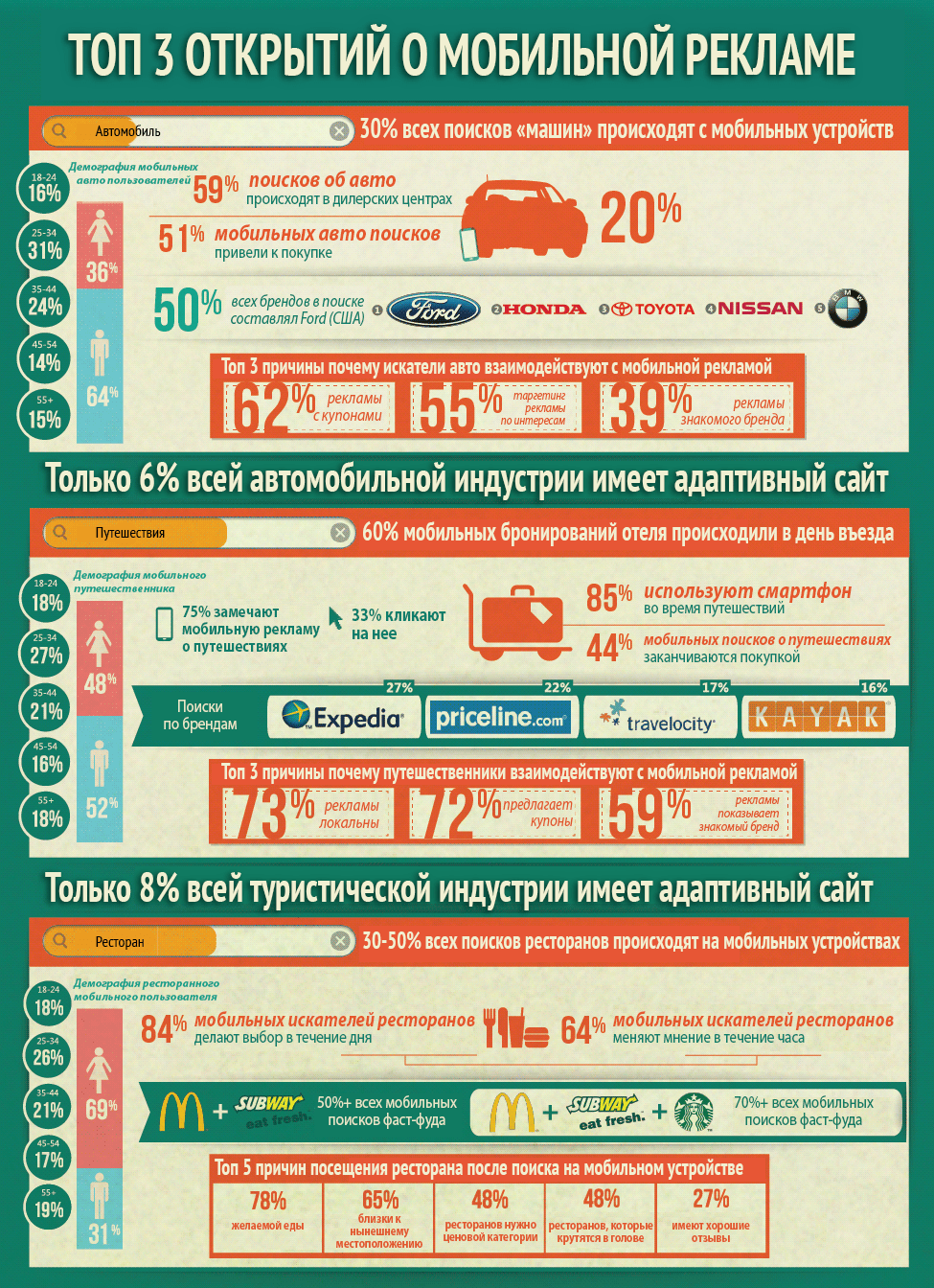Топ открытий о мобильной рекламе сегодня у нас в блоге. Давайте рассмотрим три сферы жизнедеятельности человека, где мобильная реклама наиболее эффективна.