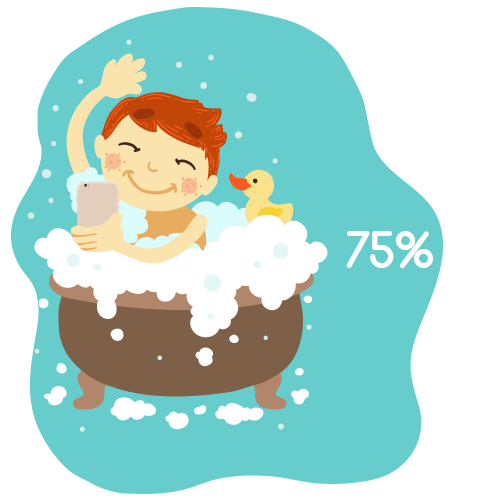 Обзор , проведенный телекоммуникационной компанией Verizon «True Wireless Confessions», сообщил, что из 6000 респондентов 90% берут свои телефоны в ванную.