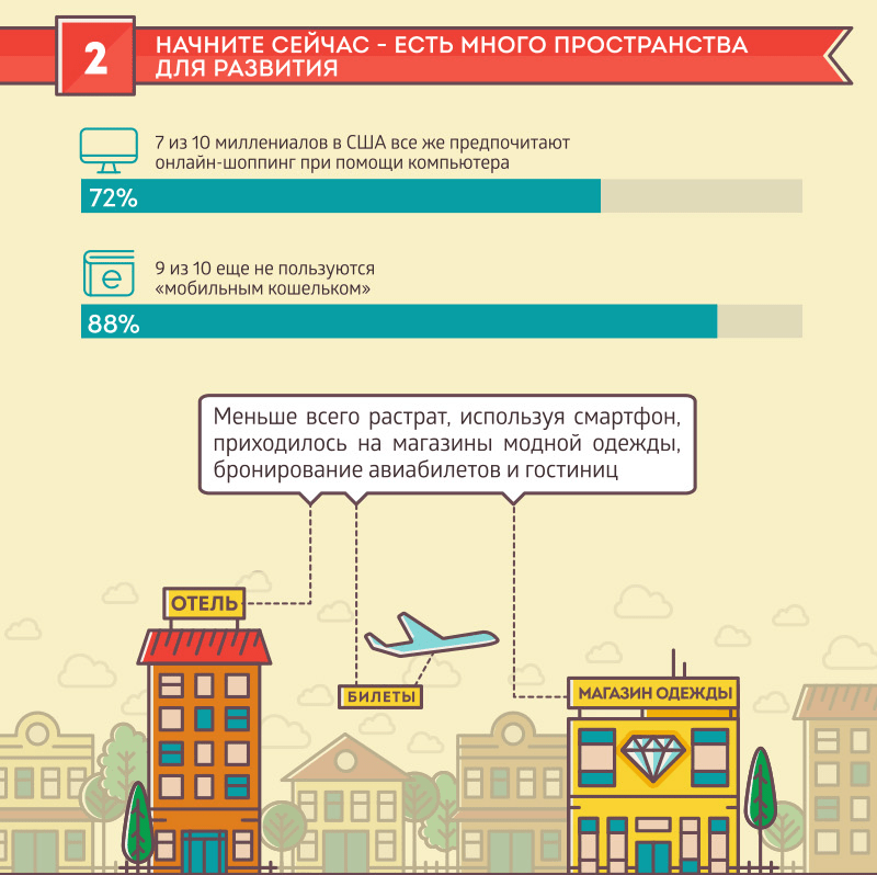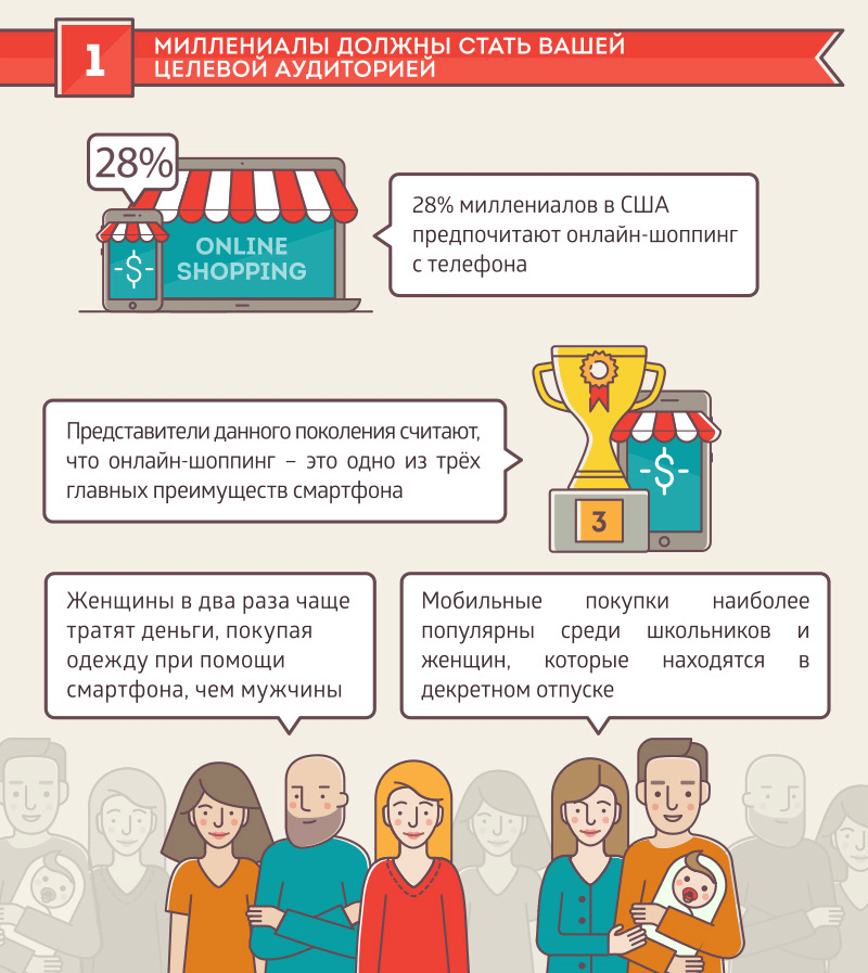 28% миллениалов в США совершают покупки через смартфоны и считают эту функцию одной из приоритетных в гаджете. Женщины и дети — сегменты аудитории, которые быстро реагируют на digital-изменения.