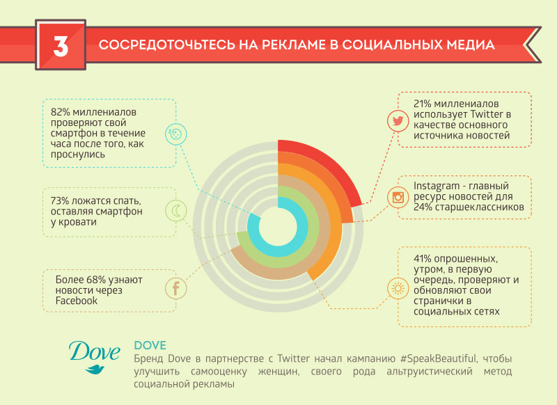 Рекламируйте продукт в социальных медиа. Компания Dove уже давно взяла этот инструмент на вооружение. Рекламная кампания будет эффективной, если связать её со значимыми для потенциальных клиентов вопросами.
