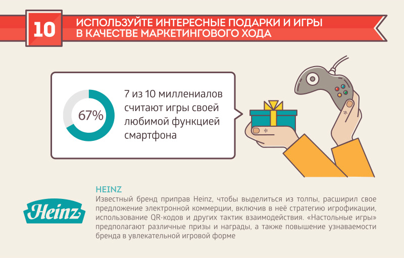 Добавьте функции игры и скидки. Два миллениала из трёх считают игры любимой возможностью их телефонов. Объедините бонусные вознаграждения с игровыми, и успех вам обеспечен.