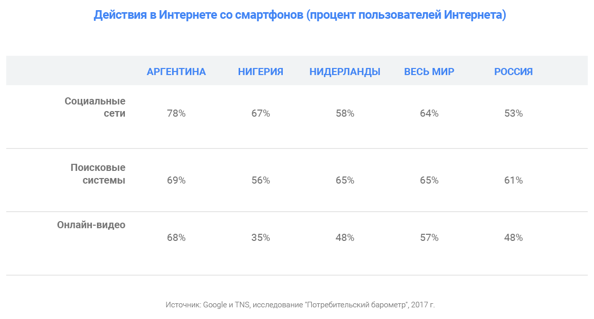 Согласно данным Google, социальные сети со смартфонов используют 53% пользователей Интернета.