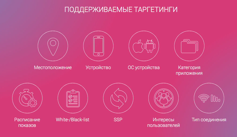 Возможности настройки сложного таргетинга необязательно придумывать самостоятельно. Зачем «изобретать велосипед»? Наша рекламная платформа позволяет размещать рекламу с точным таргетингом.