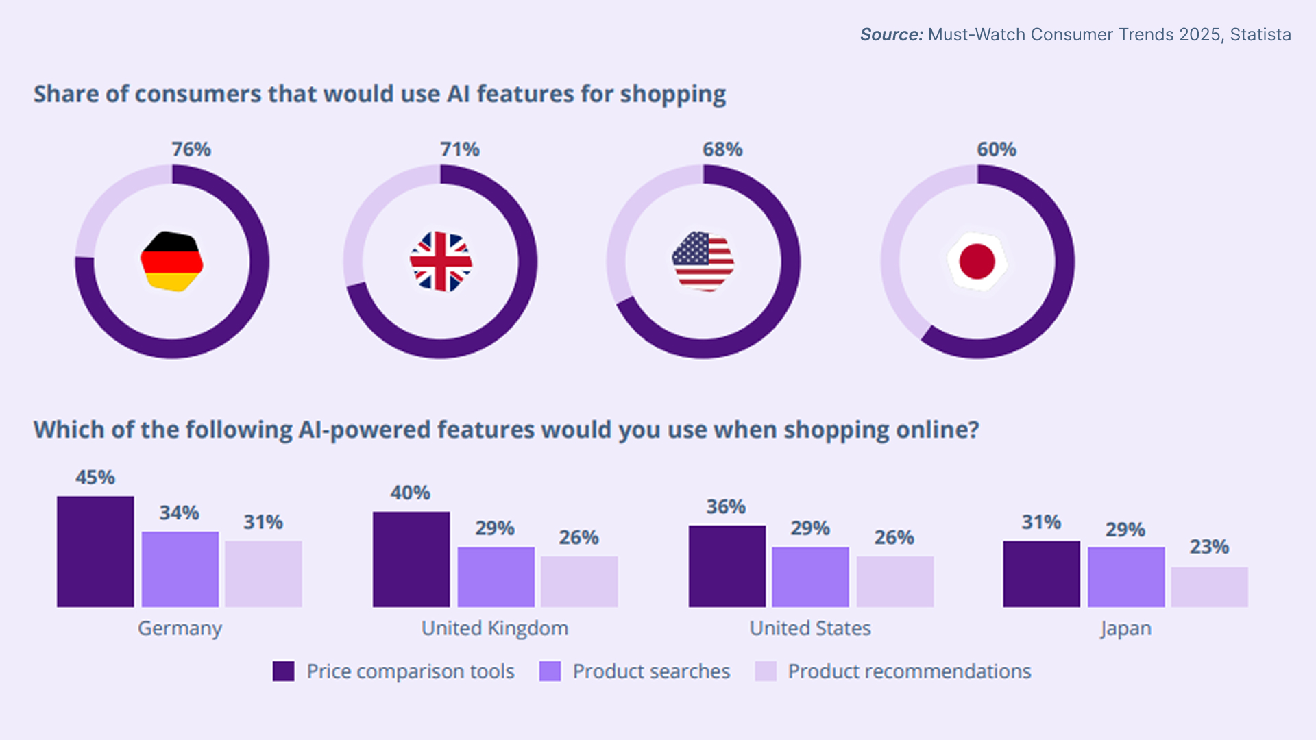 В 2025 году потребители, особенно на западных рынках, активно используют ИИ-инструменты, чтобы ориентироваться в мире ритейла. Нейросети становятся помощниками в поиске лучших цен, отзывов, инновационных брендов.