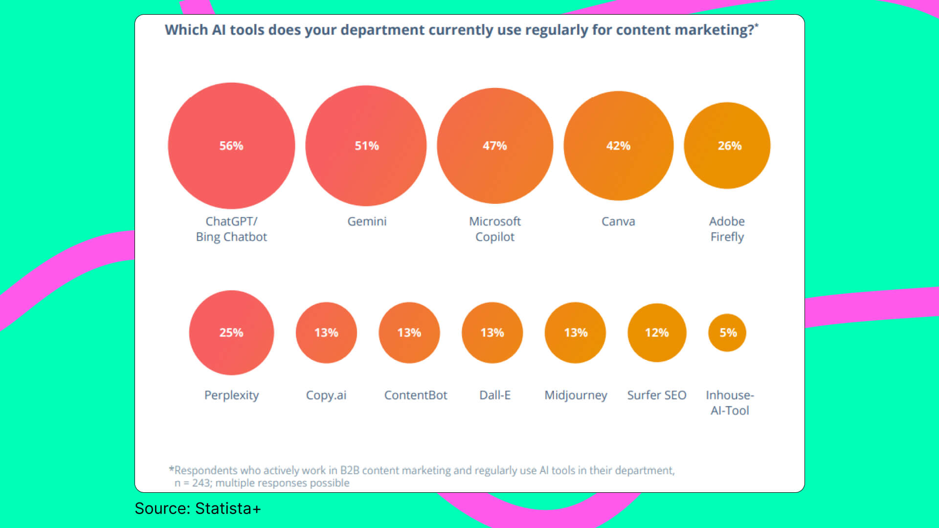 Например, в контент-маркетинге ИИ используется на всех этапах работы с контентом: от генерации идей до подготовки отчетности. Однако это приводит к увеличению объема контента и усиливает конкуренцию за внимание.