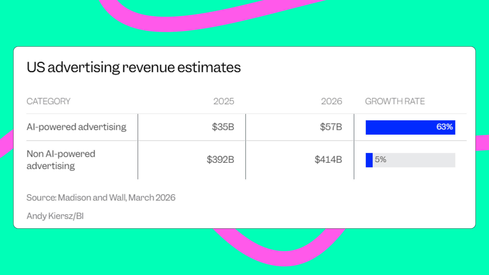 По статистике, в 2026 году рынок рекламы с ИИ вырастет на 63% и достигнет $57 млрд. Это 12% от общих расходов на рекламу. Такие темпы роста показывают: ИИ уже не эксперимент, а полноценный инструмент, который меняет подход к запуску кампаний.