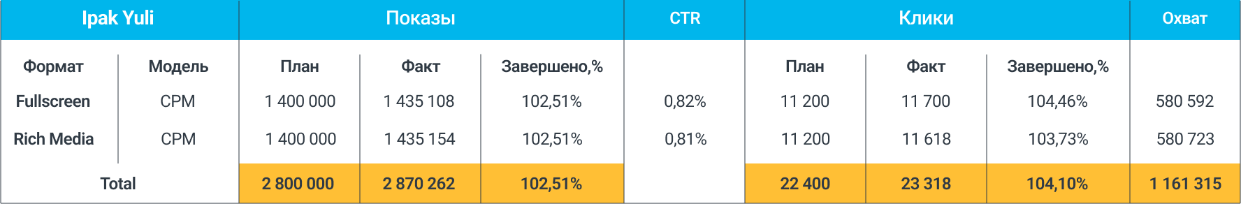 Оптимизация рекламной кампании производилась по статистике платформы BYYD. Площадки с низким показателем CTR заносились в Black List.